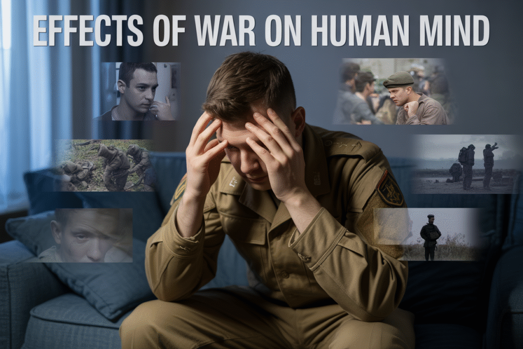 War changes everything — the world, the people, and most deeply, the human mind. The effects of war on the human mind go far beyond the battlefield, leaving silent wounds that shape emotions, behavior, and even identity. Soldiers return home with invisible battles still raging inside them, while civilians carry memories of loss and fear that never fade. Understanding how war impacts the mind helps us see that peace is not just the absence of war — it’s the healing of hearts and thoughts scarred by it.